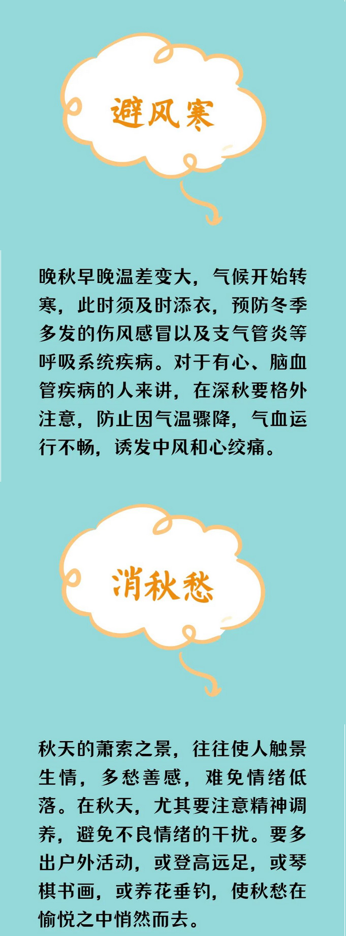 秋天,氣候由熱變涼,人體腠理由疏松轉(zhuǎn)為致密,陽氣開始潛藏于內(nèi)。秋風(fēng)不是總送爽,在暑往寒來、氣候變化無常的“多事之秋”,養(yǎng)生務(wù)須趨利避害,順應(yīng)天時(shí),注意以下三個(gè)階段的不同。